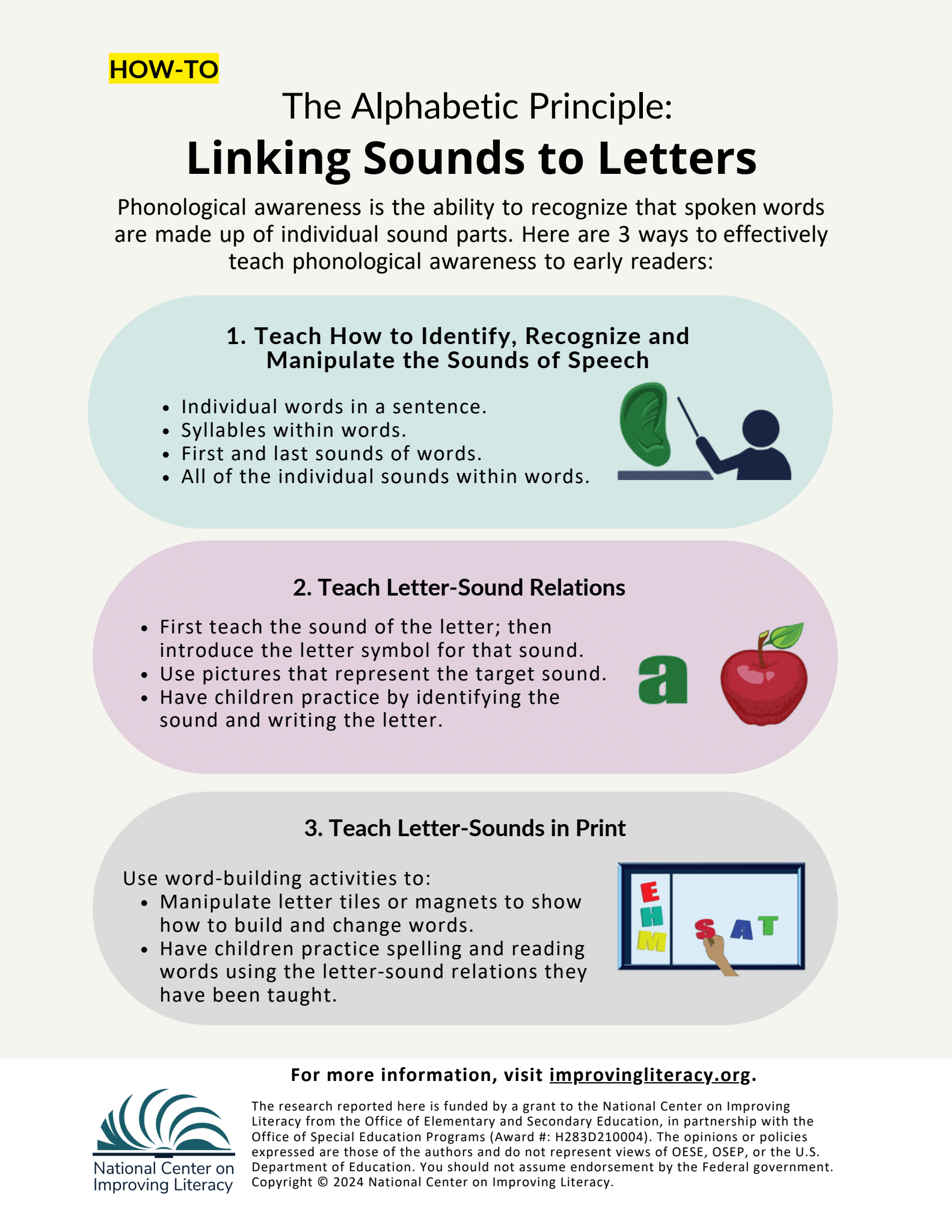 National Center on Improving Literacy. (2018). The Alphabetic Principle: Linking Sounds to Letters. https://www.improvingliteracy.org/resource/alphabetic-principle-linking-sounds-to-letters